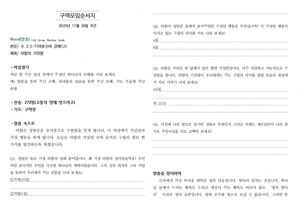 2025 | 11월 30일 주간 구역모임 순서지