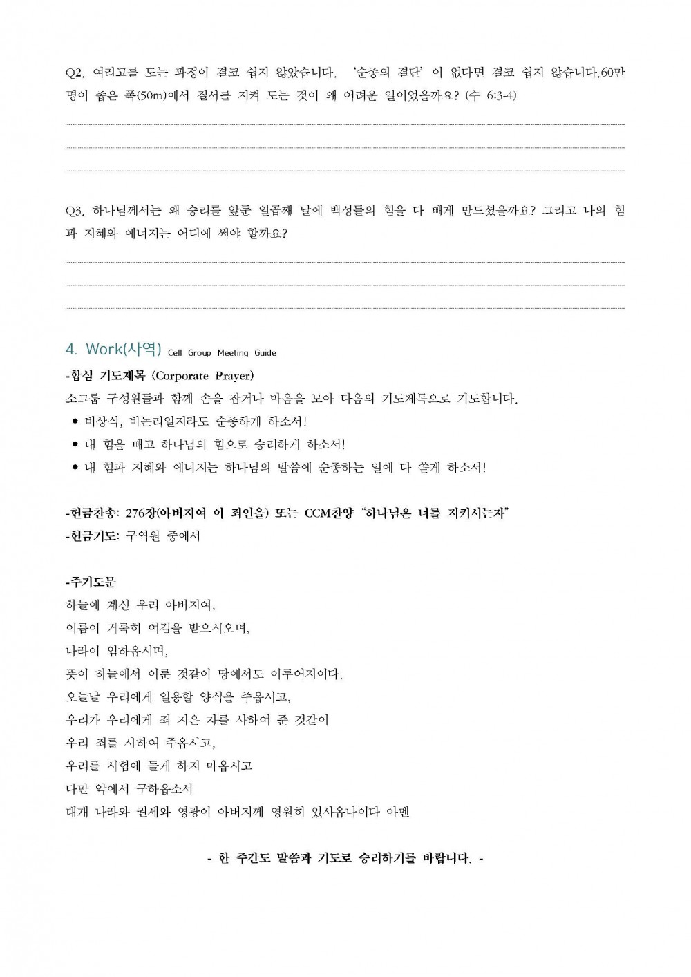 2026 | 01월 25일 주간 소그룹 나눔