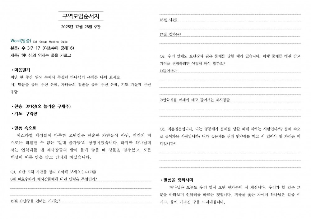 2025 | 12월 28일 주간 구역모임 순서지