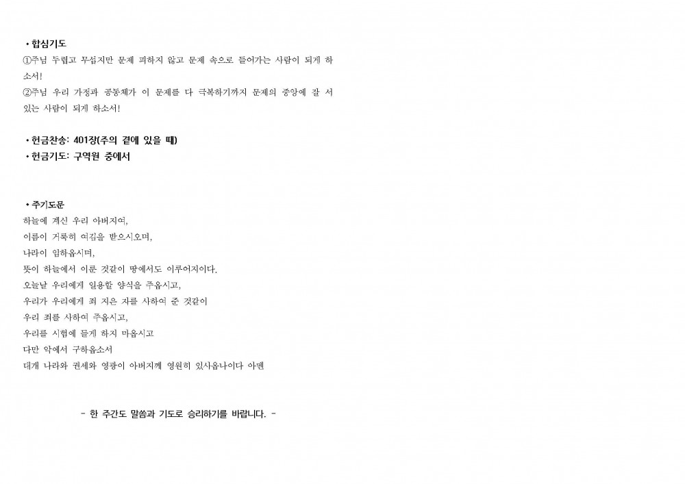 12월 28일 주간 구역모임 순서지