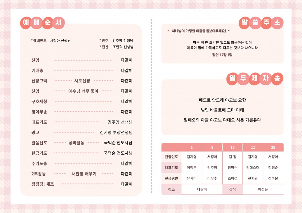 목록 [주 보] 260308 은혜교회 영아부 주보 작성자 영아부 작성일 26-03-08 12:08 | 조회 6 | 댓글 0 본문 260308 은혜교회 영아부 주보 입니다~! 다음글 댓글목록 등록된 댓글이 없습니다. 목록