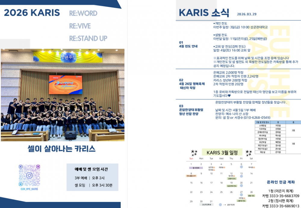 목록 [2청년소식] [카리스 소식] 2026.03.29 소식지 작성자 청년부 작성일 26-03-29 12:52 | 조회 8 | 댓글 0 본문 2026.03.29 카리스 소식 알려드립니다. 이전글다음글 댓글목록 등록된 댓글이 없습니다. 목록