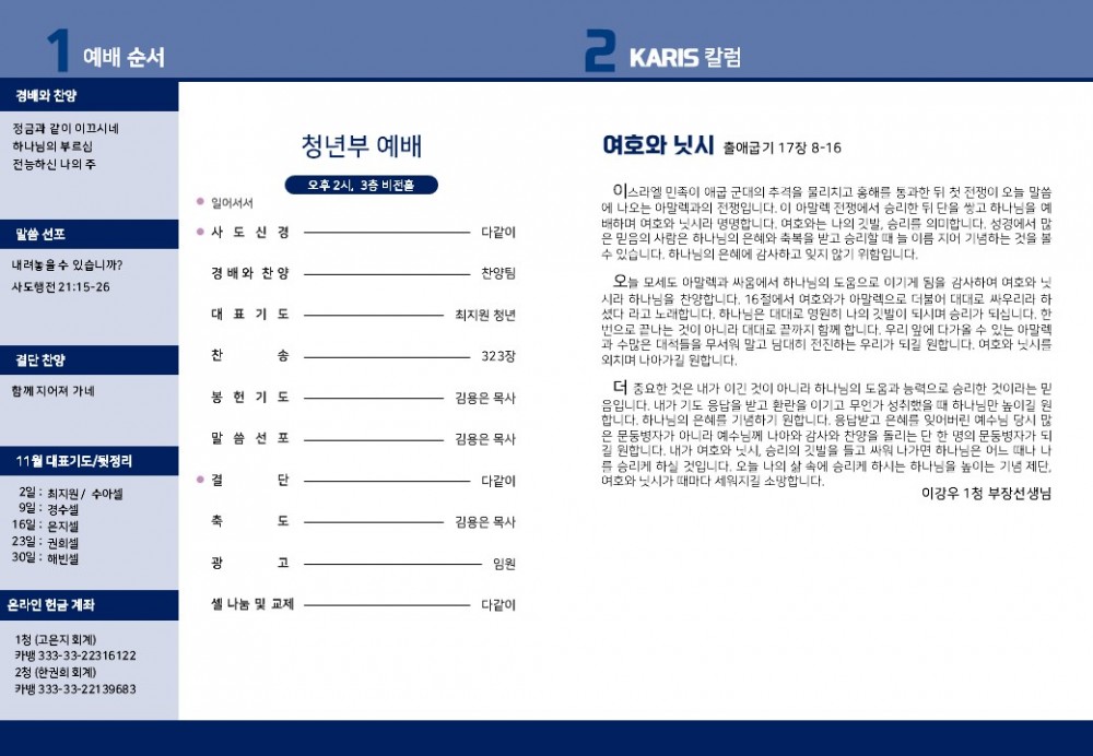 목록 [2청년주보] [카리스예배] 25.11.02 주보 작성자 청년부 작성일 25-11-03 09:59 | 조회 14 | 댓글 0 본문 25.11.02 카리스 주보입니다. 다음글 댓글목록 등록된 댓글이 없습니다. 목록