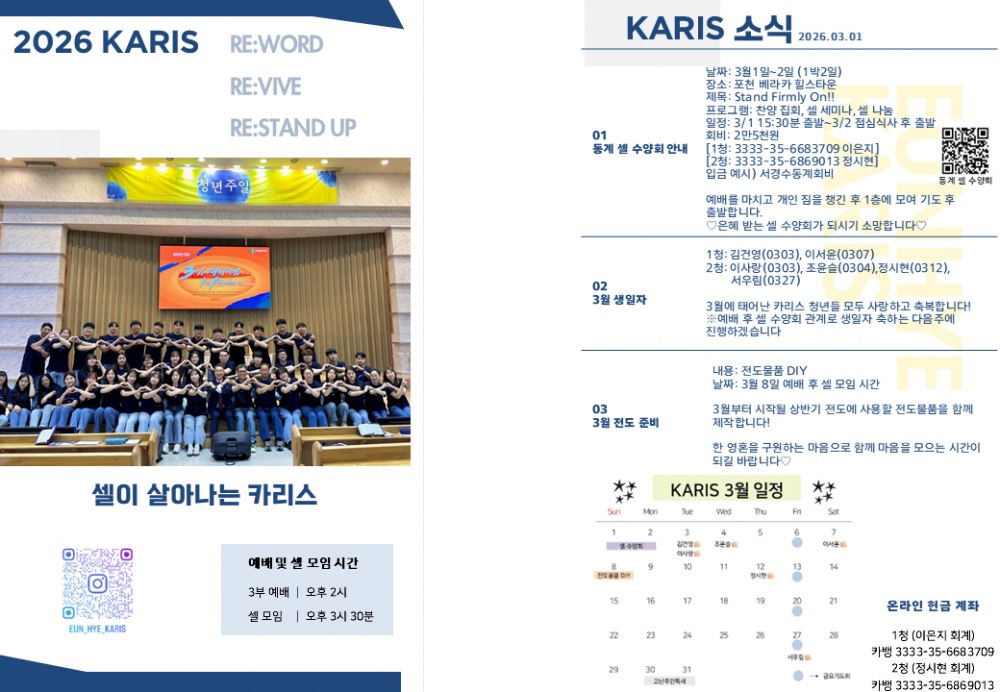 목록 [2청년소식] [카리스 소식] 2026.03.01 소식지 작성자 청년부 작성일 26-03-01 12:52 | 조회 38 | 댓글 0 본문 2026.03.01 카리스 소식 알려드립니다. 이전글다음글 댓글목록 등록된 댓글이 없습니다. 목록