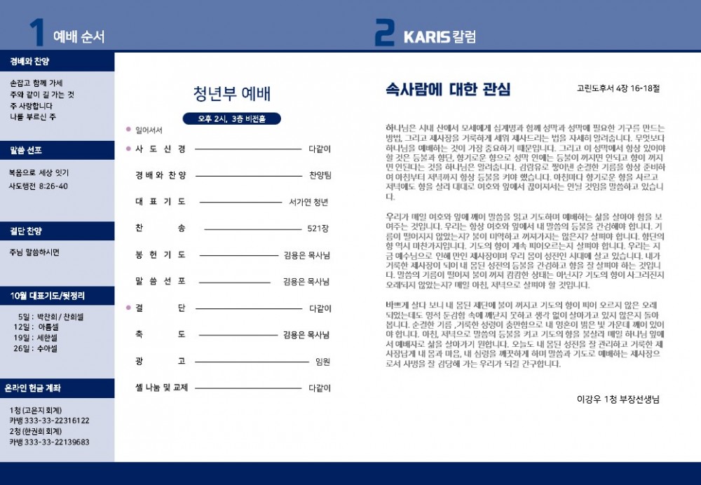 목록 [1청년주보] [카리스예배] 25.09.28 주보 작성자 청년부 작성일 25-09-28 16:31 | 조회 111 | 댓글 0 본문 25.09.28 카리스 주보입니다 이전글다음글 댓글목록 등록된 댓글이 없습니다. 목록