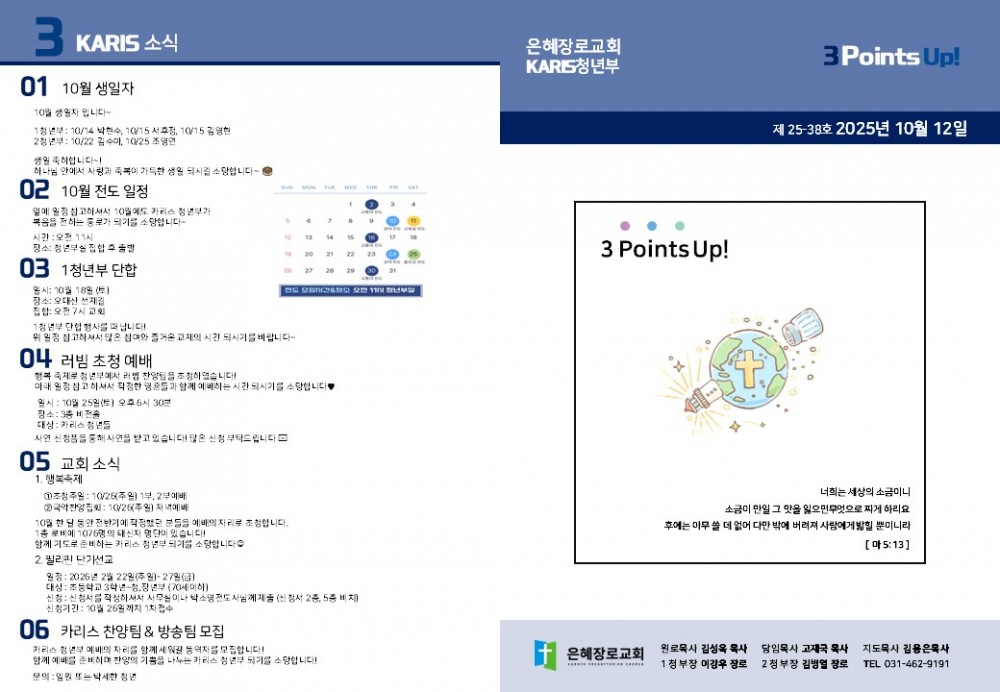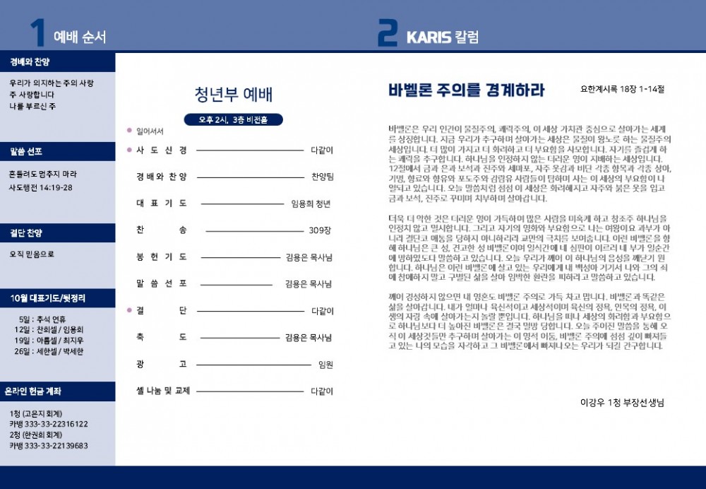 목록 [1청년주보] [카리스예배] 25.10.12 주보 작성자 청년부 작성일 25-10-12 17:50 | 조회 80 | 댓글 0 본문 25.10.12 카리스 주보입니다 이전글다음글 댓글목록 등록된 댓글이 없습니다. 목록