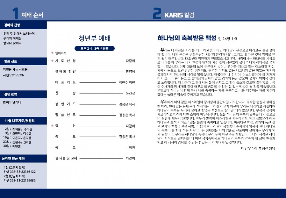 목록 [1청년주보] [카리스예배] 25.11.30 주보 작성자 청년부 작성일 25-11-30 18:17 | 조회 50 | 댓글 0 본문 2025.11.30 카리스 주보입니다. 이전글다음글 댓글목록 등록된 댓글이 없습니다. 목록