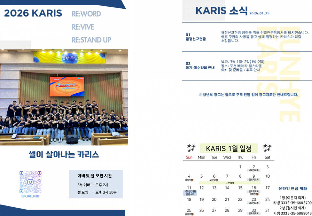 목록 [1청년소식] [카리스 소식] 2026.01.25 소식지 작성자 청년부 작성일 26-01-25 10:42 | 조회 87 | 댓글 0 본문 2026.01.25 카리스 소식 알려드립니다. 이전글다음글 댓글목록 등록된 댓글이 없습니다. 목록