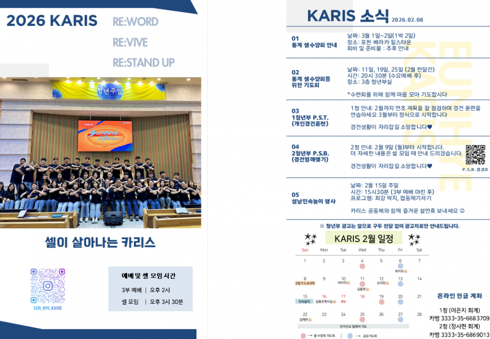목록 [1청년소식] [카리스 소식] 2026.02.08 소식지 작성자 청년부 작성일 26-02-08 12:31 | 조회 72 | 댓글 0 본문 2026.02.08 카리스 소식 알려드립니다. 이전글다음글 댓글목록 등록된 댓글이 없습니다. 목록
